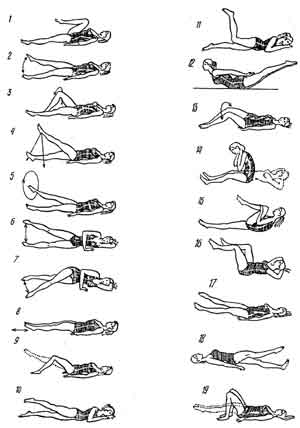 16. دهستهکانتان بخهنه ژێر سهر و قاچهکانتان له کاتێکدا له ئهژنۆدا چهماونهوه ڕێک ڕاگرن و ههر وهکو سواری دووچهرخه بوون , ههوهڵ به لایهکدا و پاشان به لاکهی تردا پێ لێدهن . ئهو حهرهکهته تا ئهو جێیه دریژه پێبدهن که ههست به ماندوویهکی کهم دهکهن.